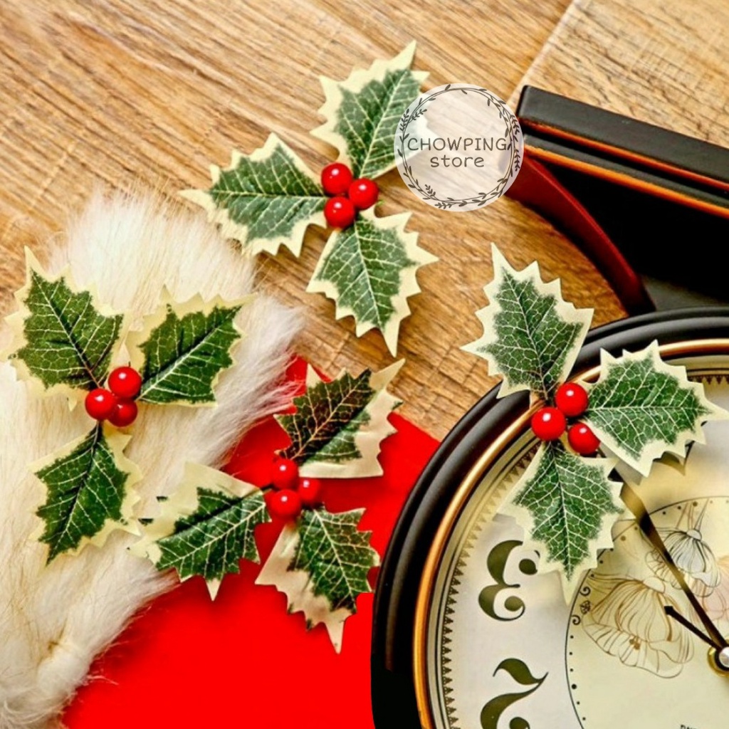 Daun + Cherry Hiasan Dekorasi Kado Parcel Hampers Natal Murah