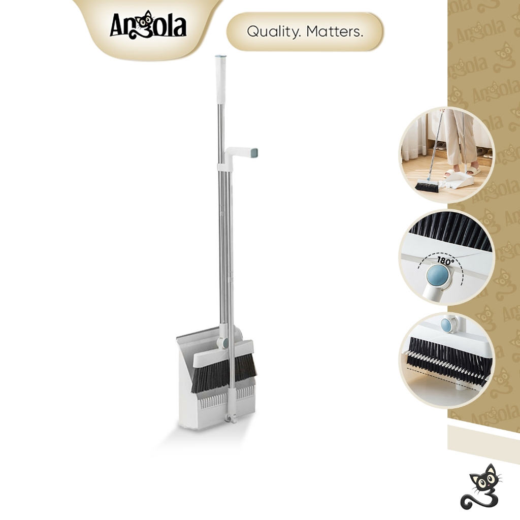 ANGOLA Set Sapu Pengki Lipat D17 Broom Set Dustpan Alat Pembersih lantai