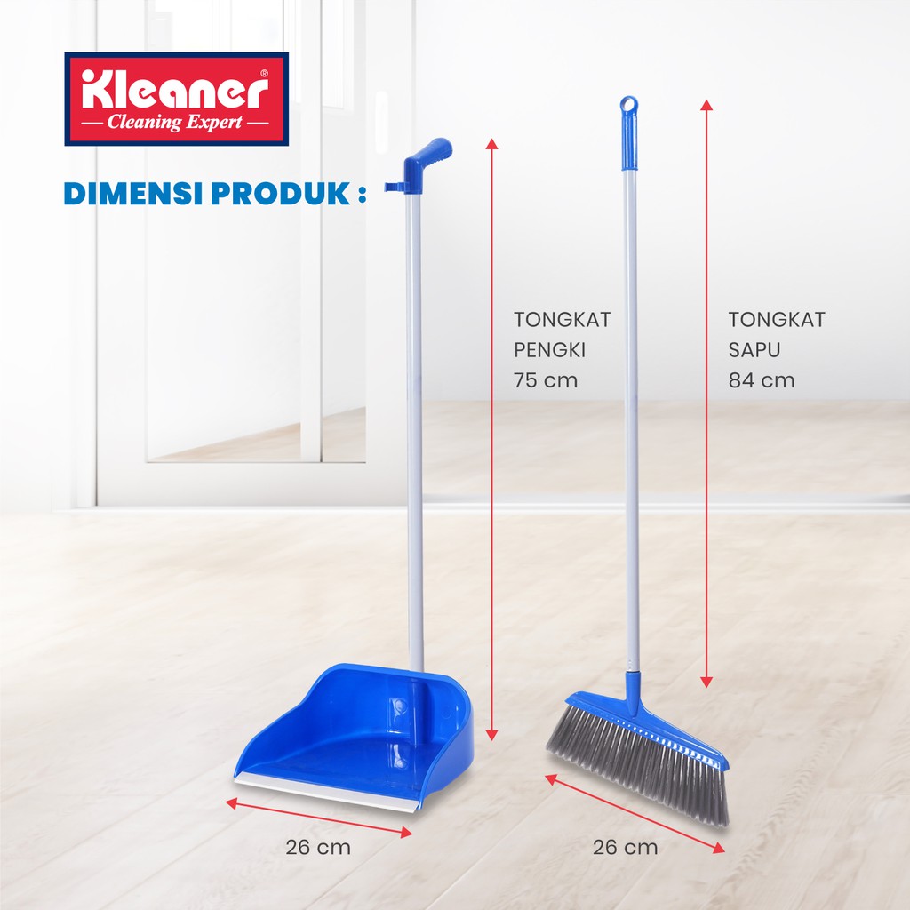Kleaner Sapu Lantai dan Pengki 1 Set Lengkap Dengan Handle Broom and Dustpan Pembersih Lantai