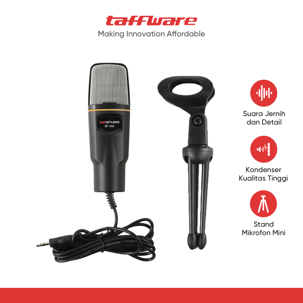 TaffSTUDIO Mikrofon Kondenser Studio dengan Stand - SF-666 - Black