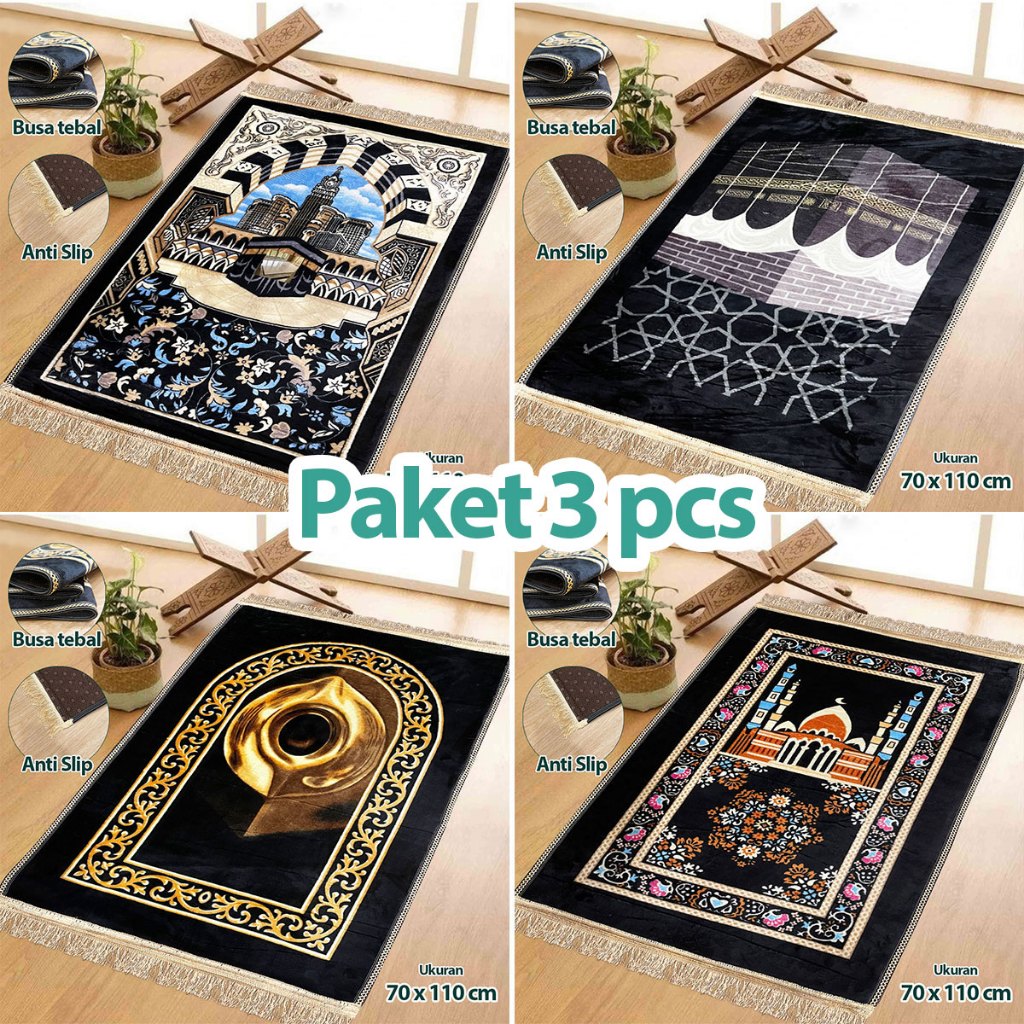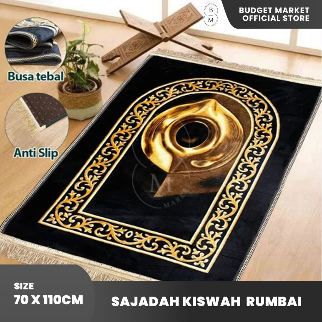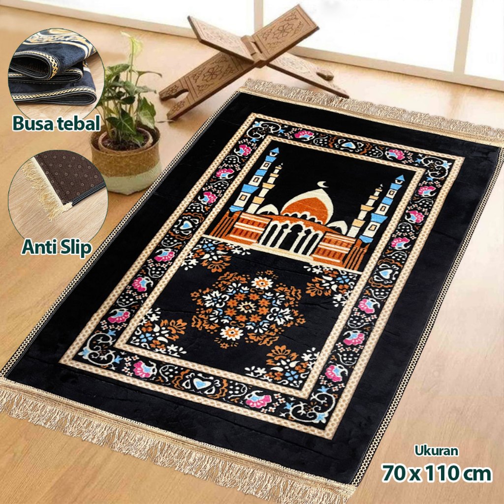 Sajadah Turki Hitam Kiswah 70x110cm Sajadah Rumbai Bludru Tebal Premium