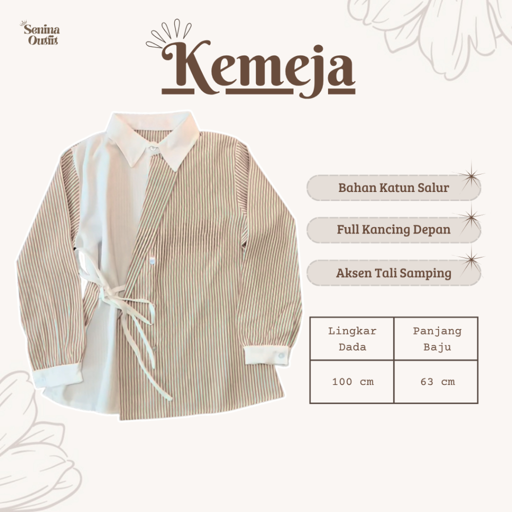 Setelan One Set Hijab Style Kemeja Salur + Celana + Jilbab fit Wanita Kekinian - SO77