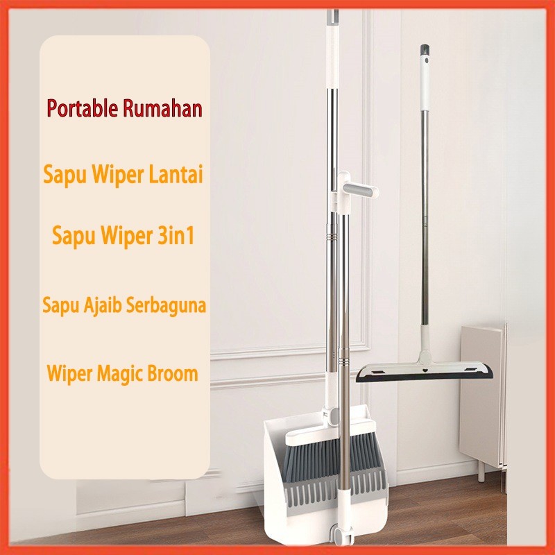 3in1 Dustpan Set Sapu Dan Pengki Set Sapu Pengki White & Blue)