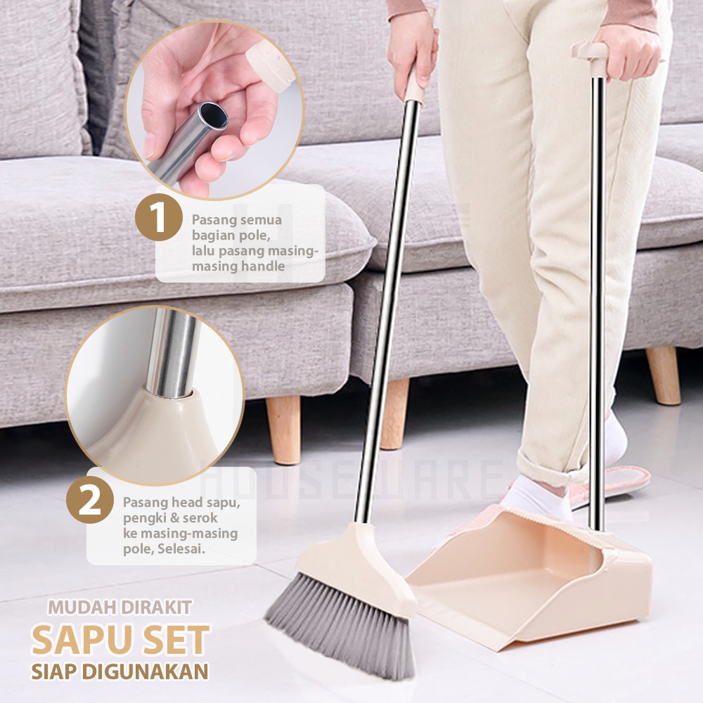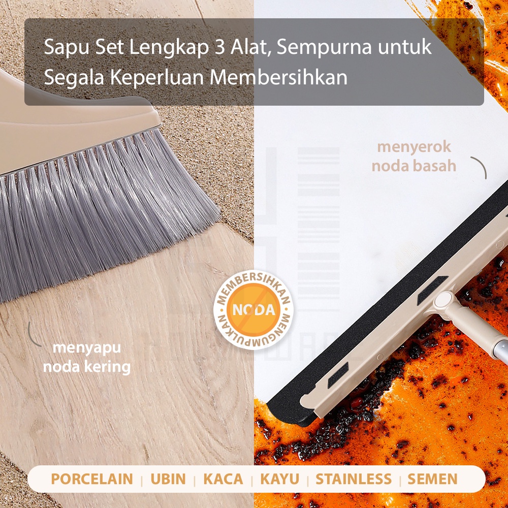 HUGO Sapu Lantai 3 in 1 Broom Set Alat Pembersih Lantai Sapu Pengki Serokan Air
