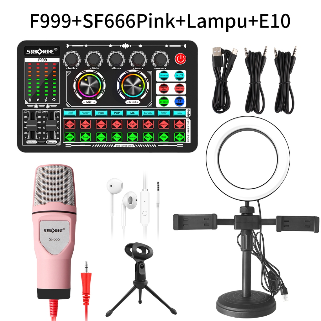 Siborie【Free headphone】F999+SF666+E10+Lampu Paket lengkap Soundcard Microphone Headphone Light SET Satu set dudukan