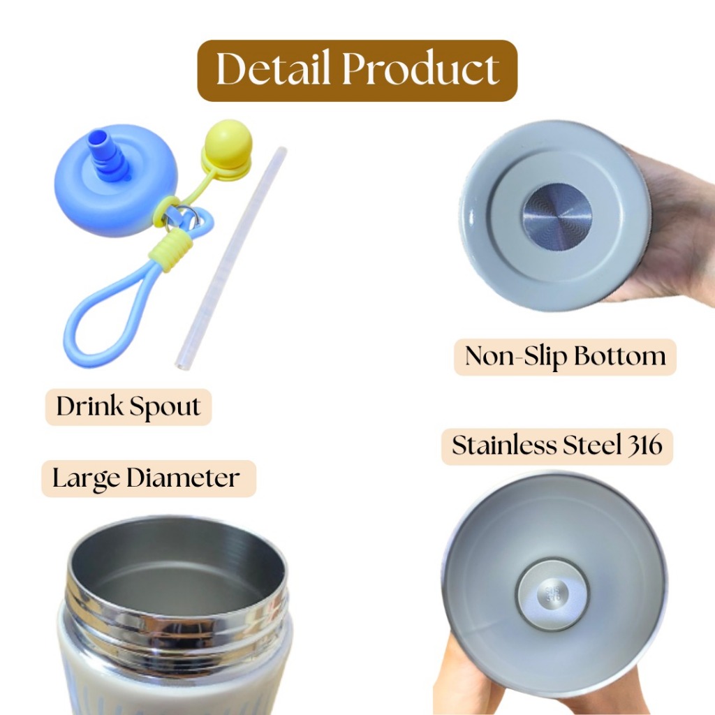 Tumbler Bottle Stainless Steel 600ml / Botol Minum Anak Sedotan Cute