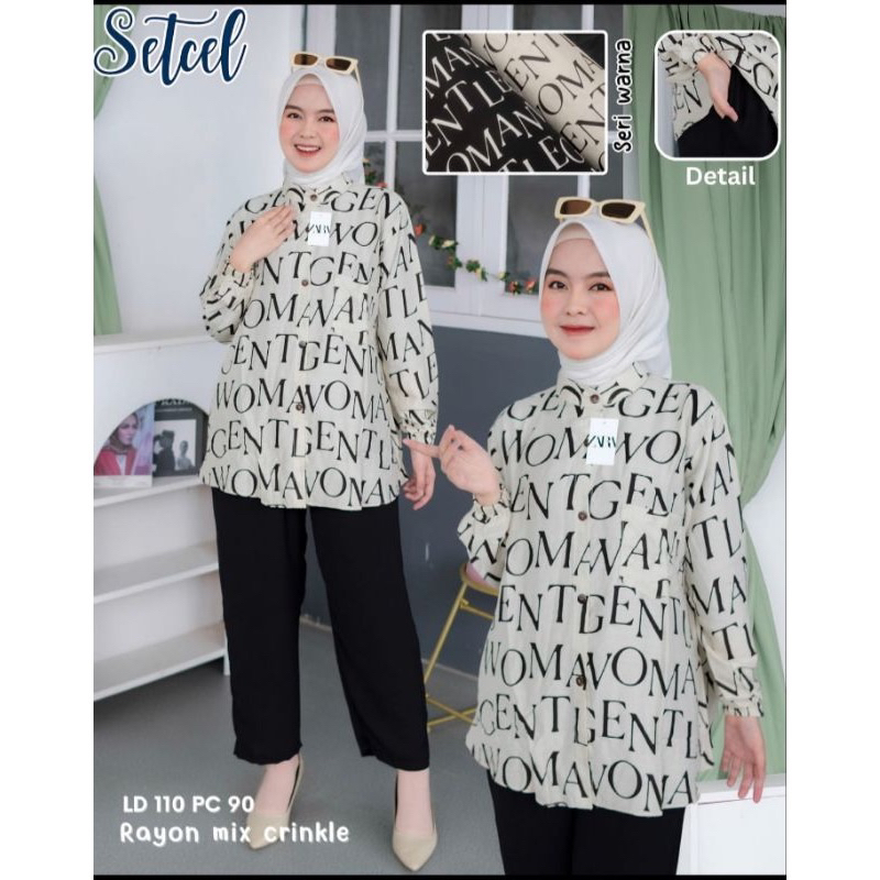 ONE SET RAYON MIX CRINKEL/LUXURY KANYA SET MURAH/PAKAIAN WANITA /PAKAIAN WANITA BAJU DAN CELANA/BAJU WANITA KERJA SEMI FORMAL/FASHION WANITA