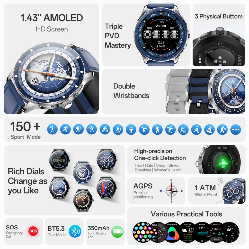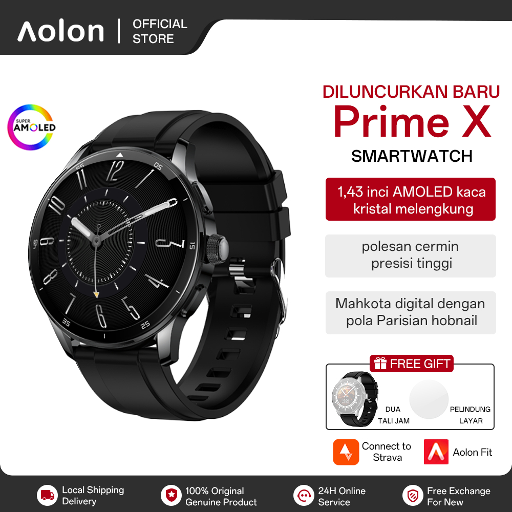 2026 NEW Aolon Prime X Smartwatch 3D 1.43 inch AMOLED Tali ganda Original Pria dan wanita Bluetooth Call AOD IP68 Waterproof Tahan air