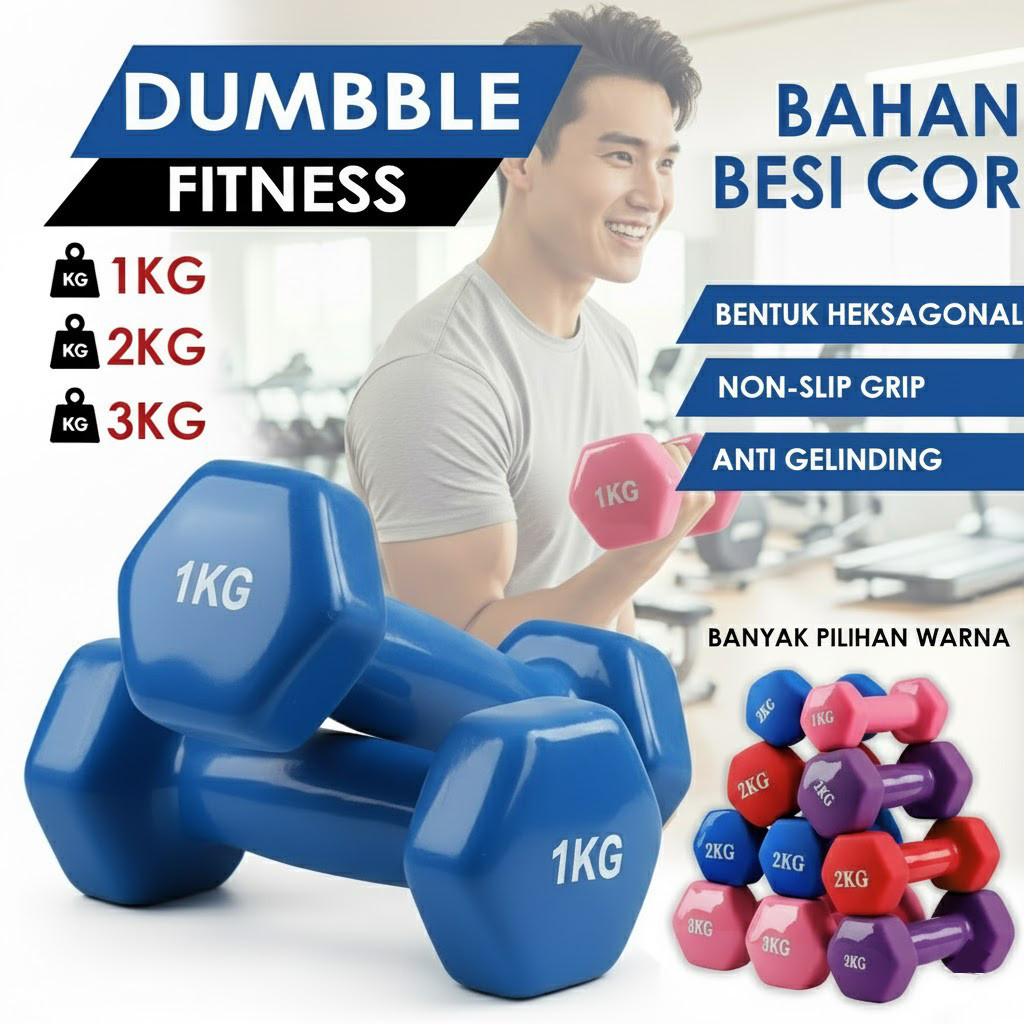 Dumble Mini Barbel Kecil 1Kg 2Kg 3Kg Non Slip Dumbell Barbel Mini Heksagonal Anti Slip Warna Warni Yoga Fitness Workout Latihan Di Rumah