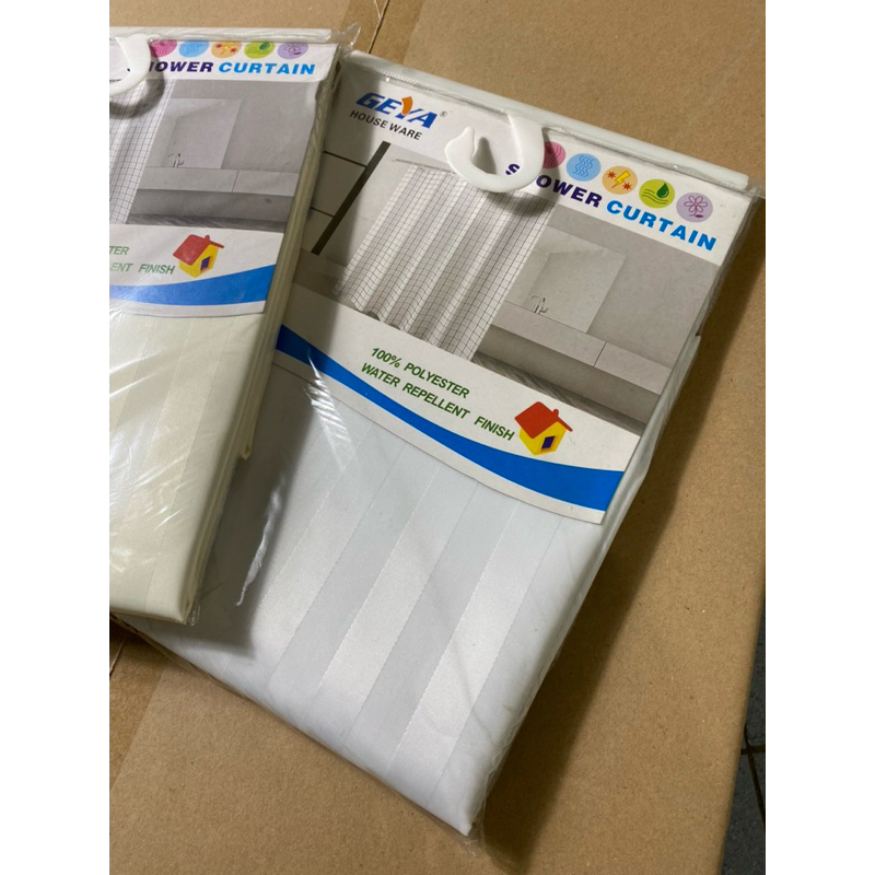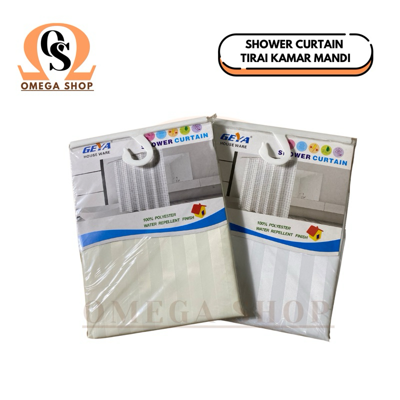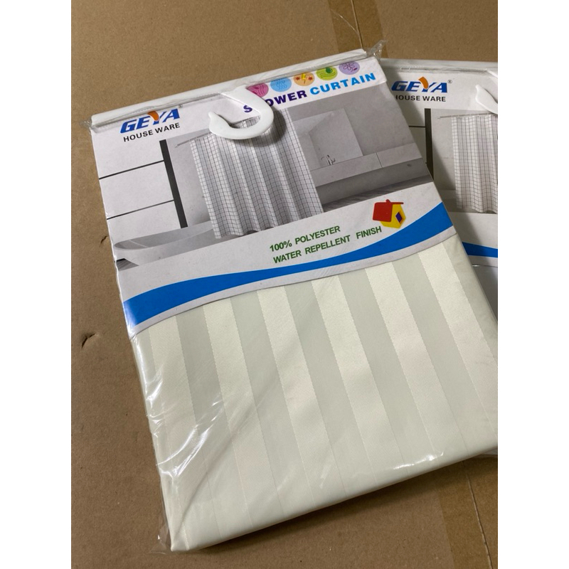Tirai Kamar Mandi lyester Shower Curtain Kain Gorden Hordeng Motif Putih Ivory Garis