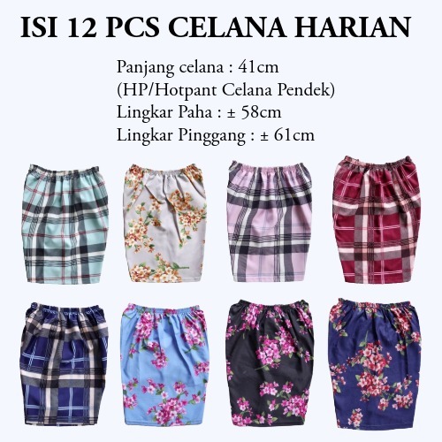 ISI 12 PCS CELANA PENDEK HARIAN BAHAN SATIN APLE