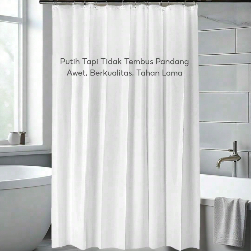 851 - Tirai Kamar Mandi Putih Anti Air - Shower Curtain - Gorden Tet 180 x 200