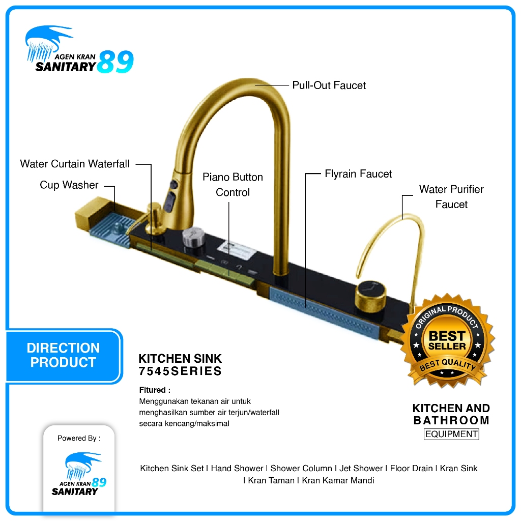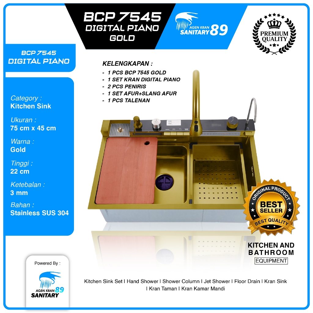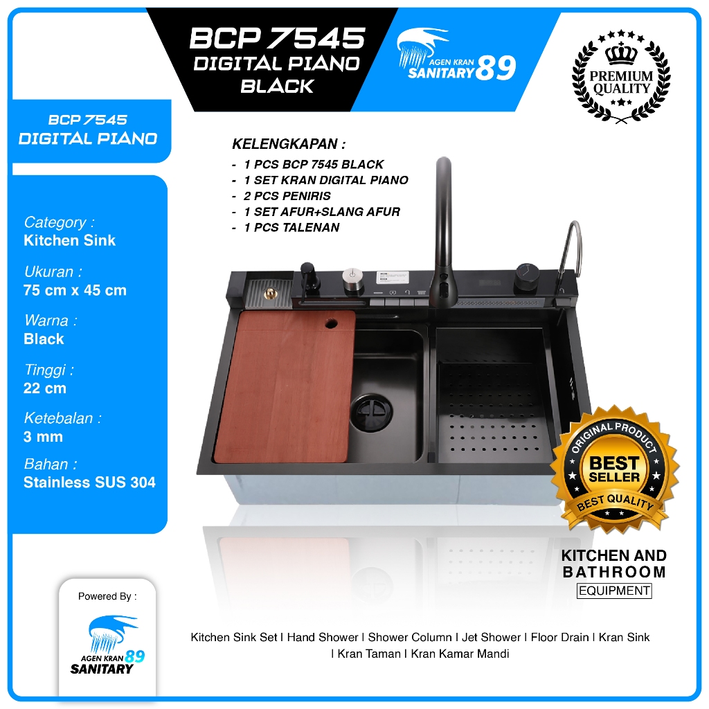 WASTAFEL CUCI PIRING/WASTAFEL CUCI PIRING STAINLESS/LED/KITCHEN SINK MODERN LED PIANO 7545 BLACK AND