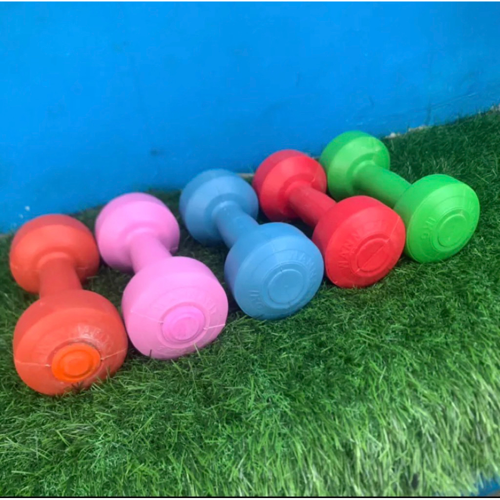 DUMBBELL PVC 5 kg WARNA || dumble barbel dumbel dambel barble angkat beban berwarna berat 5 kg kilogram
