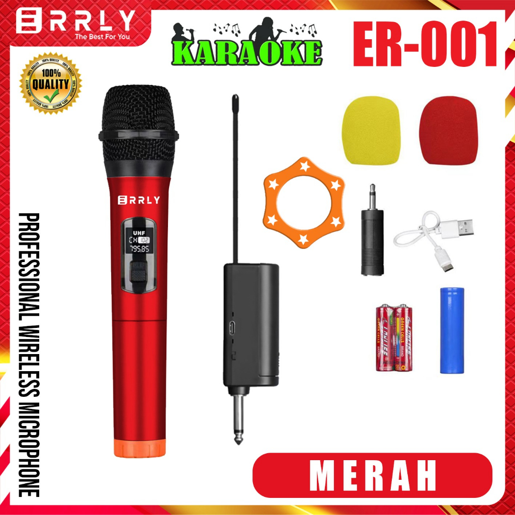 Mic Karaoke Microphone Wireless Tanpa Kabel MIC2 MIC1 ERRLY ER001 Single ER002 Dual Digital LED Mic Karaoke GENGGAM
