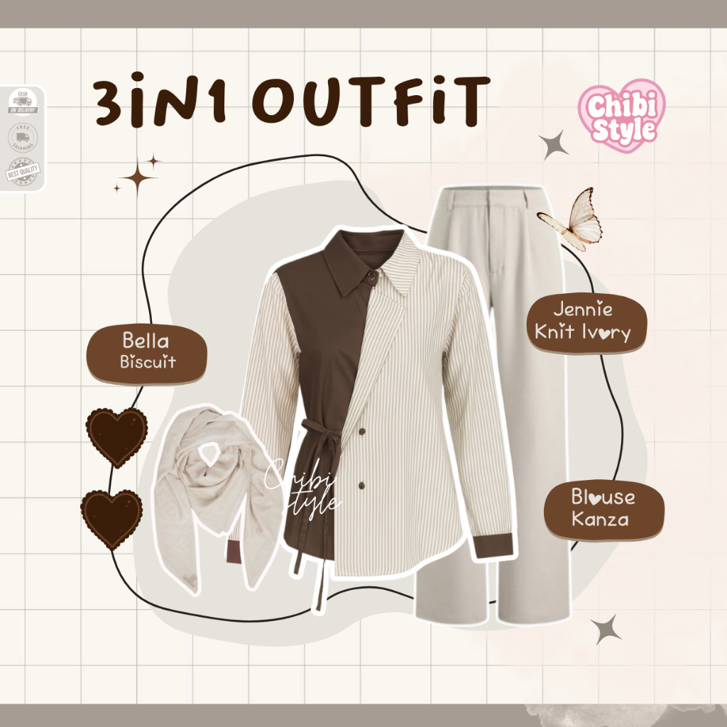 Oneset Wanita Kekinian Ootd Korean | Hijab Bella, Kanza Blouse, Celana Knit | fit Seleb -CS21
