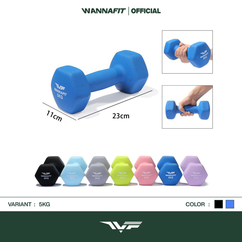 WANNAFIT 2pcs Dumbbell Barbel 1kg 2kg 3kg 4kg 5kg | Dumbell Barbell Vinyl Neoprene | Alat Latihan Beban