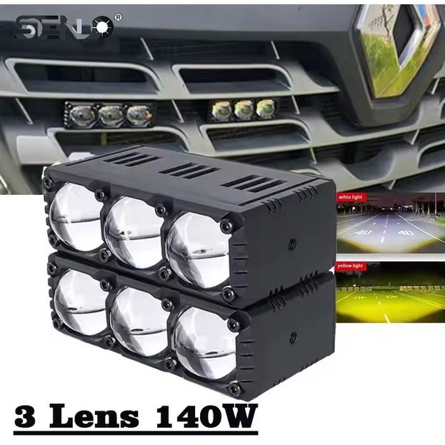 SENLO X3 140W blue lens Lampu Tembak Mini laser Projie 3 mata led triple projector lens kabut