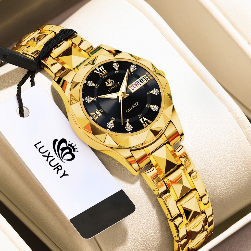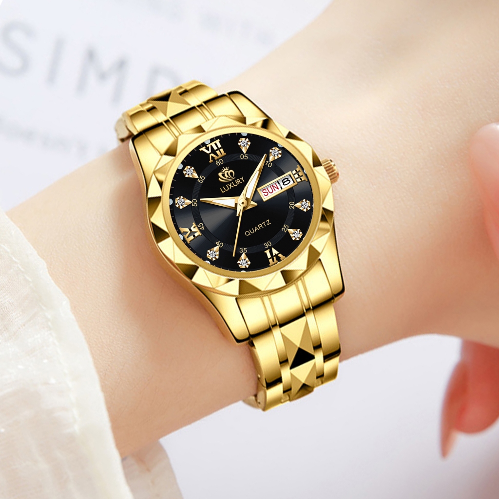 NEW Jam Tangan Wanita LUXURY Mewah Design Minimalis Tahan Air Kalender Aktif Rantai Anti Karat + Free Box
