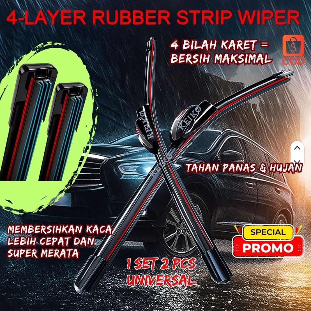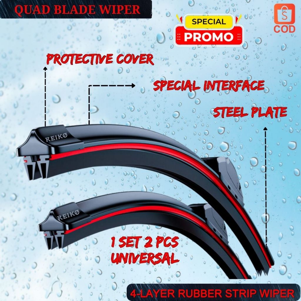 WIPER QUAD BLADE 4 LAPIS / WIPER FRAMELES / WIPER 4 KARET / WIPER 4 LAPIS KARET / WIPER QUAD REIKO