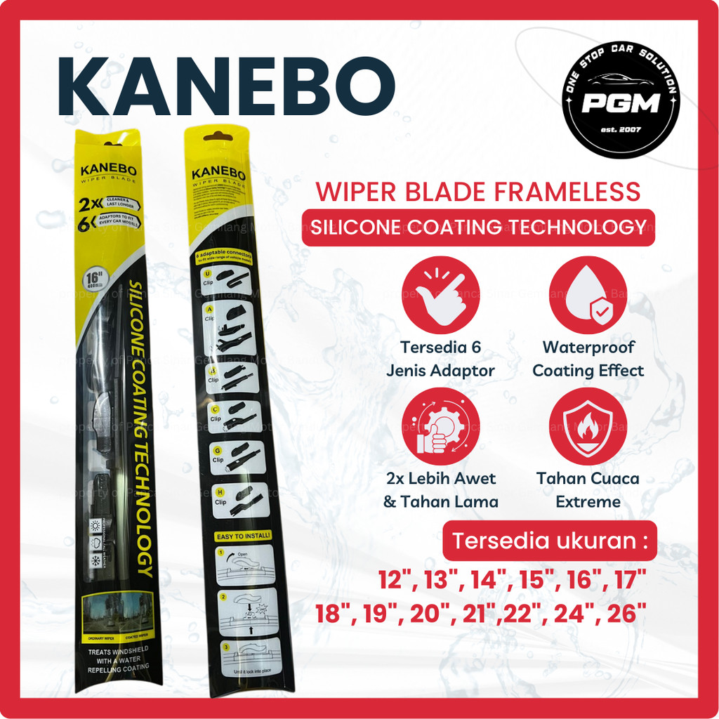 Wiper Mobil Silikon Frameless Silicone Coating Kanebo 12-26 Inch (Satuan)