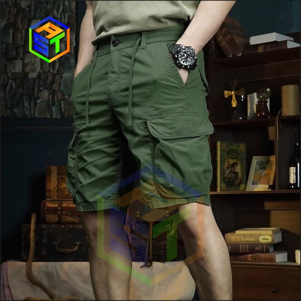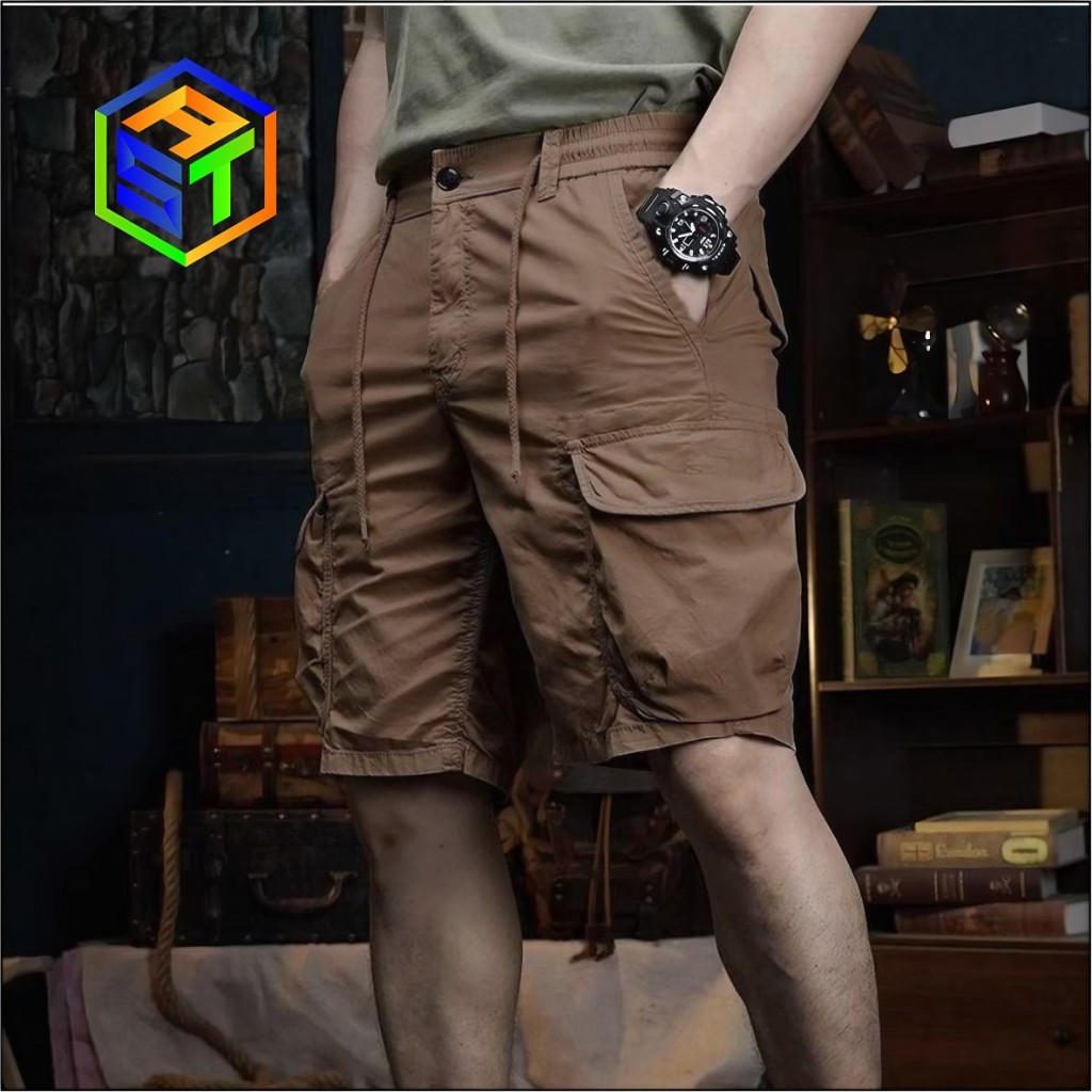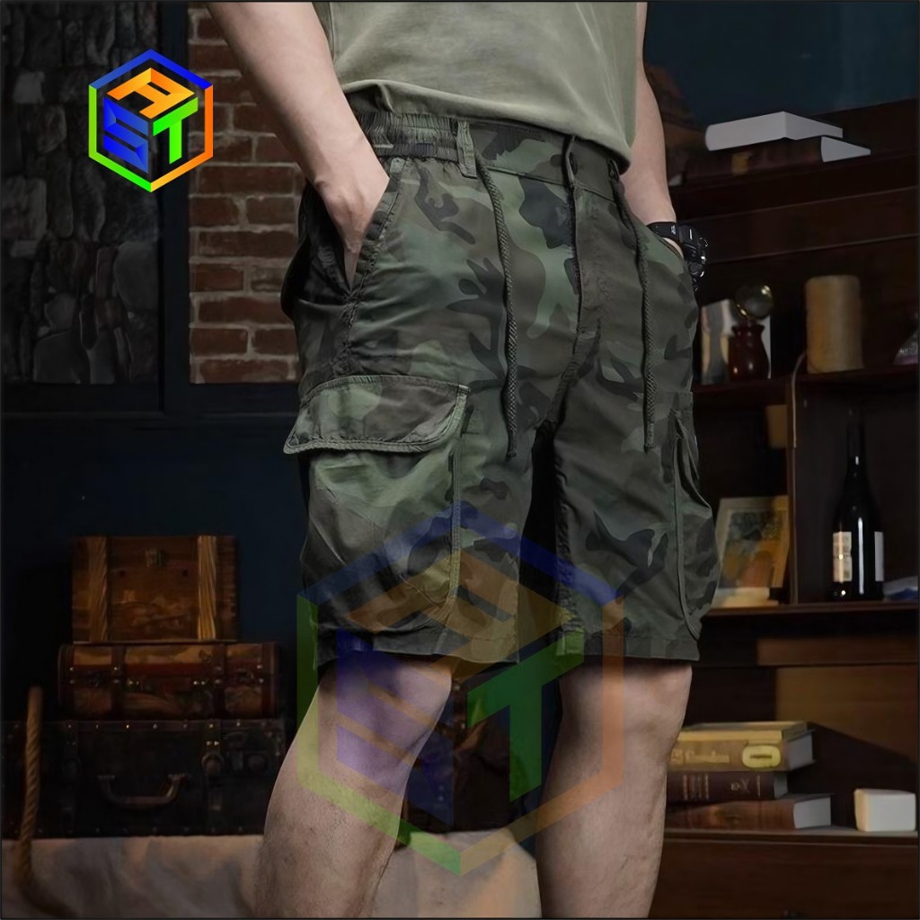 AST Store Celana Pendek Pria Wanita celana pendek dewasaa Cargo Loreng Pinggang Kombinasi Karet Tali