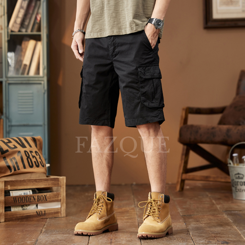 FAZQUE - Celana Pendek Cargo Pria Slim Fit Premium