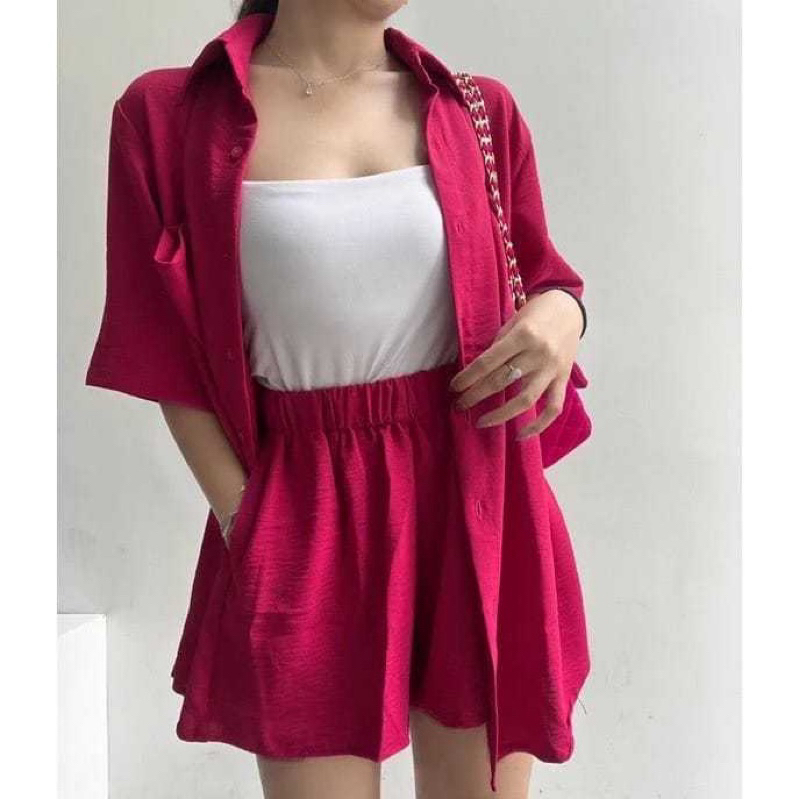 Toply shop - Setelan kemeja + pans / Set kora / Setelan wanita korean style cey krinkle premium