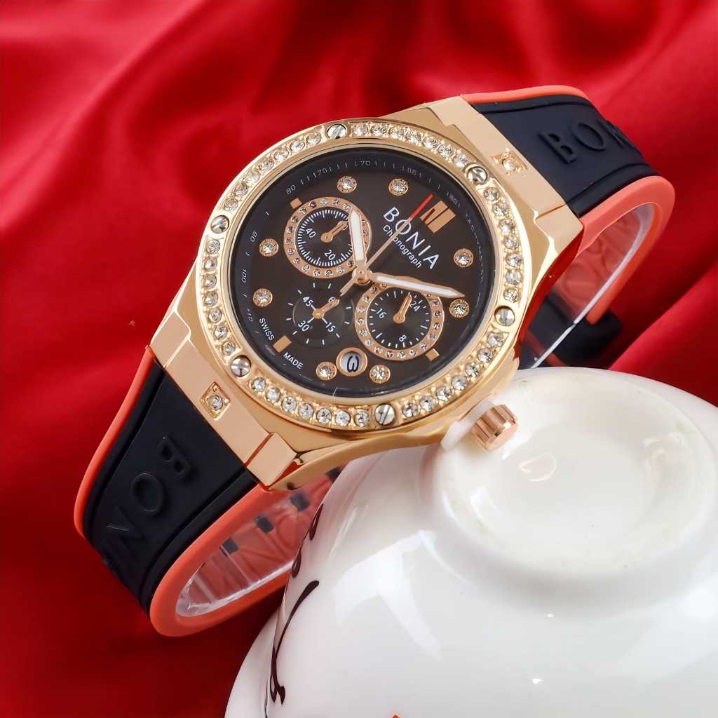 ( BISA ) jam tangan wanita BONIA RUBBER CRONO OFF BNA-7810