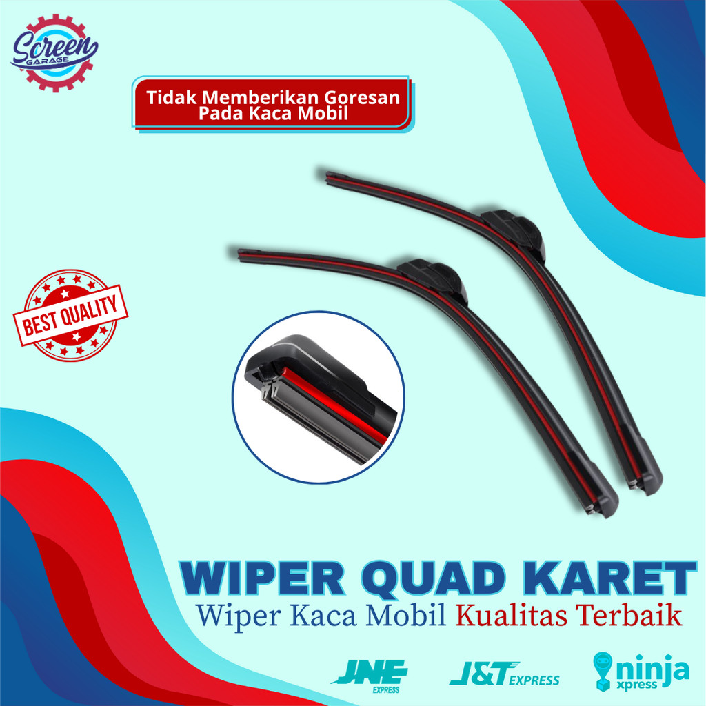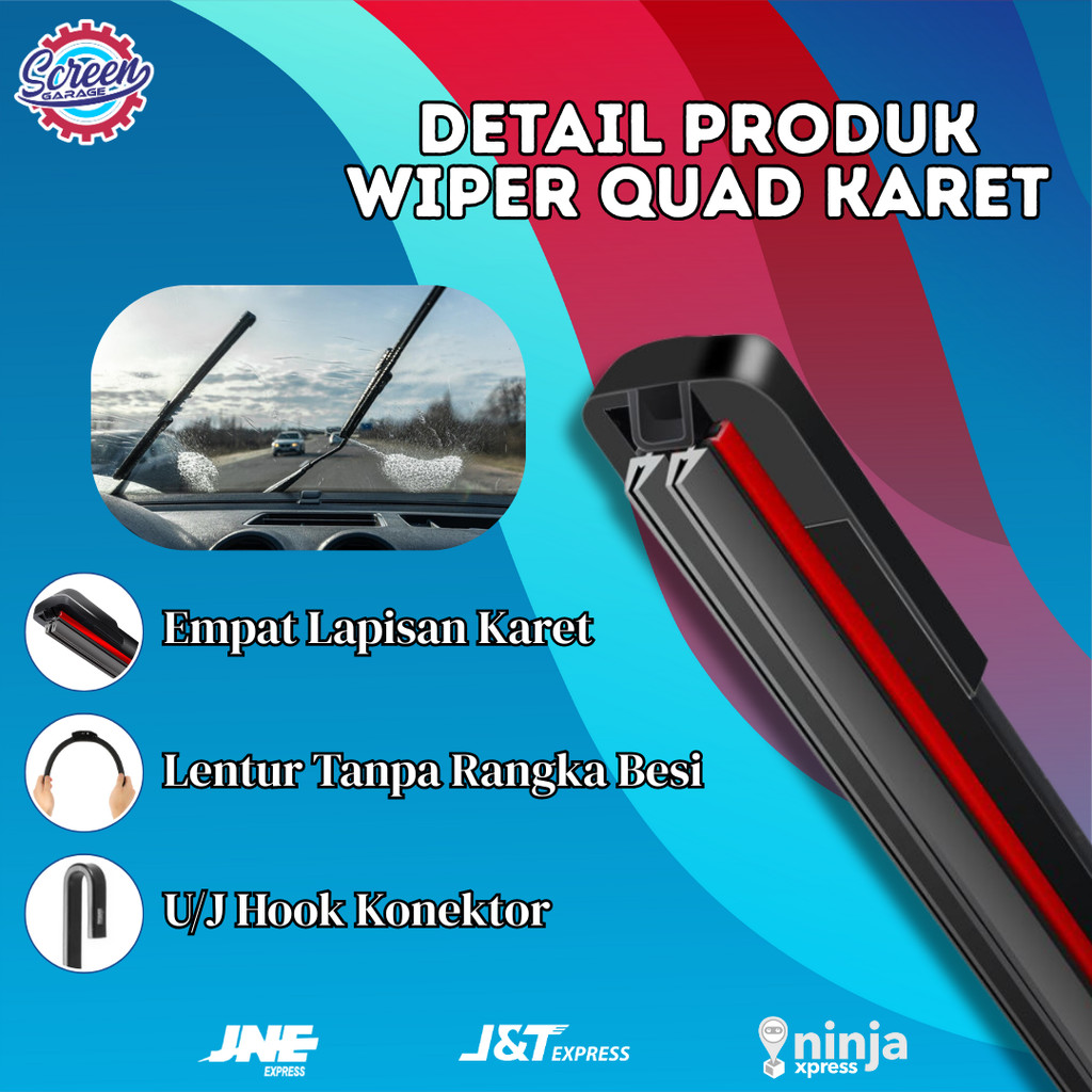 Wiper Depan Kaca Mobil Universal Quad Blade Frameless 4 Lapis Karet 1 SET Sepasang Semua Tipe Mobil