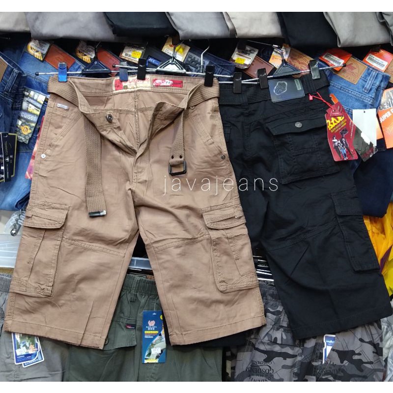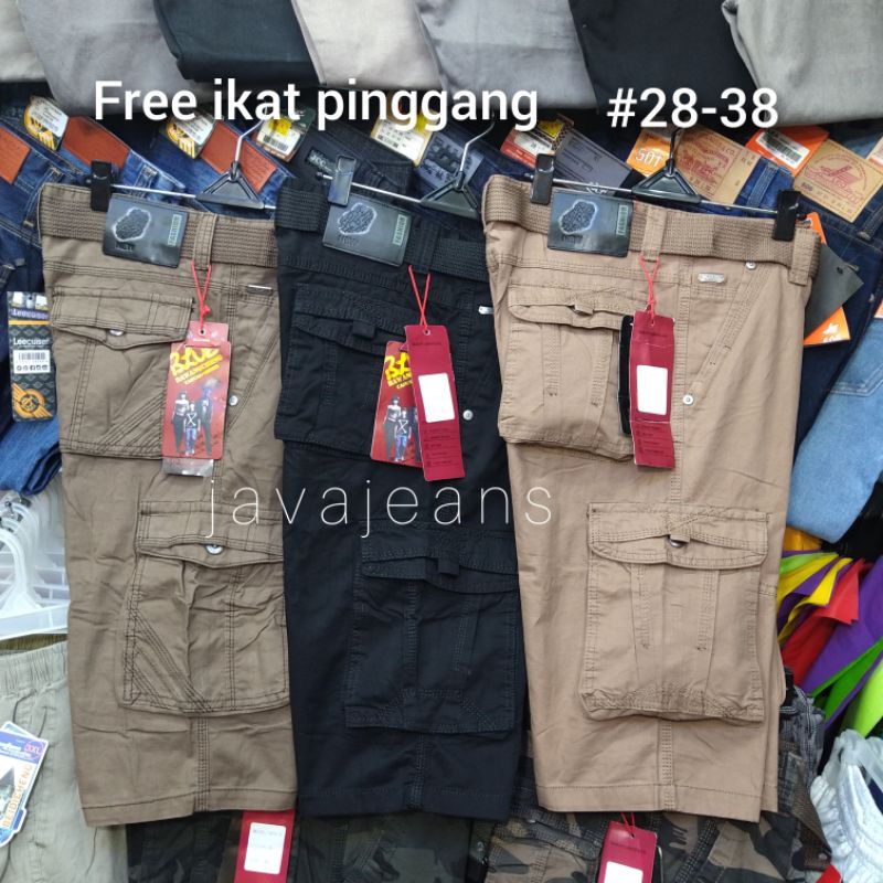 Celana cargo pendek BAWANG CHENG "original" katun twiil gratis ikatpinggang