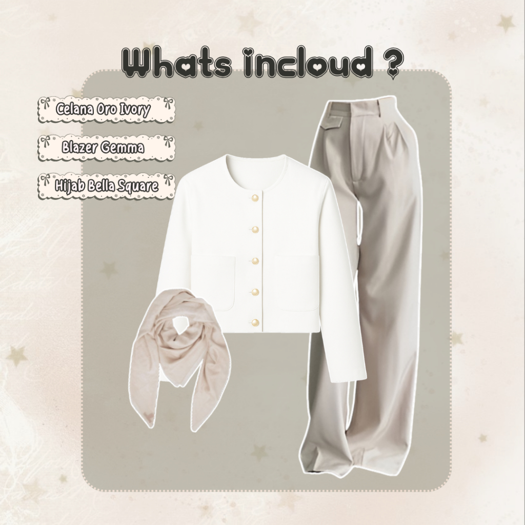 sharenafit - 3 IN 1 One Set Hijab korean fit Style Remaja Hijab Wanita Kekinian One Set Blazer Gemma + Celana Oro + Hijab - SET AE300
