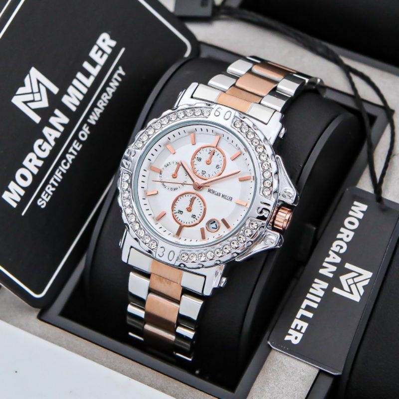 Jam Tangan Wanita Morgan Miller-MM03 Original Rantai Stanliess Tanggal Aktif