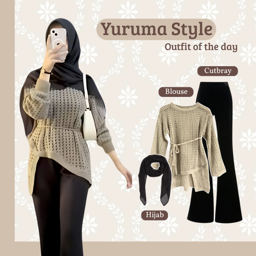 One Set Wanita 3IN1 |Yuruma Sweater Rajut - Celana Cutbray Scuba - Jilbab | Ootd Wanita Kekinian Remaja Hijab RF279