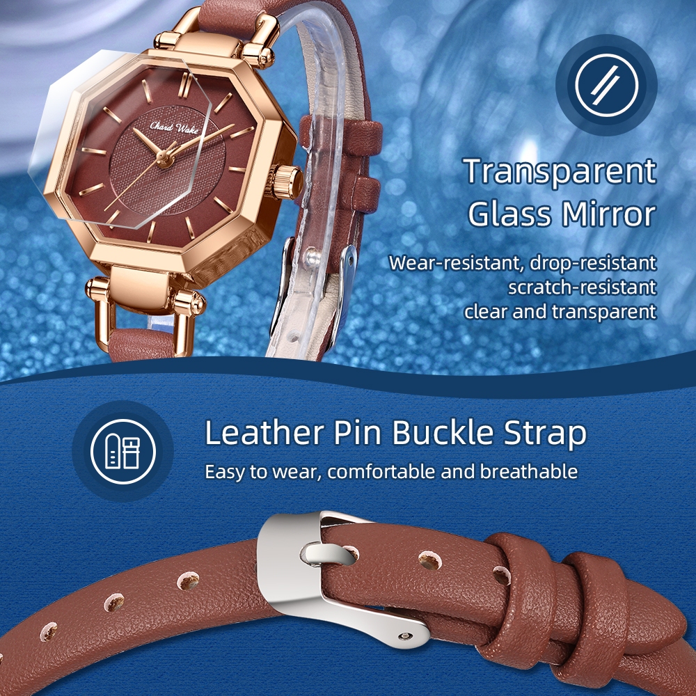 Chard Wake Jam Tangan Wanita Korea Anti Air Original Kuarsa Wanita Tali Kulit Jam Tangan Cewek Kotak Indah