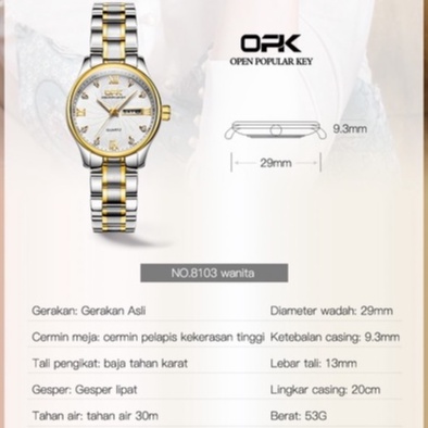 OPK Jam Tangan Wanita Anti Air Original Branded Cewek Terbaru Asli Besi Tahan Karat Gerakan Kuarsa Women Watch el