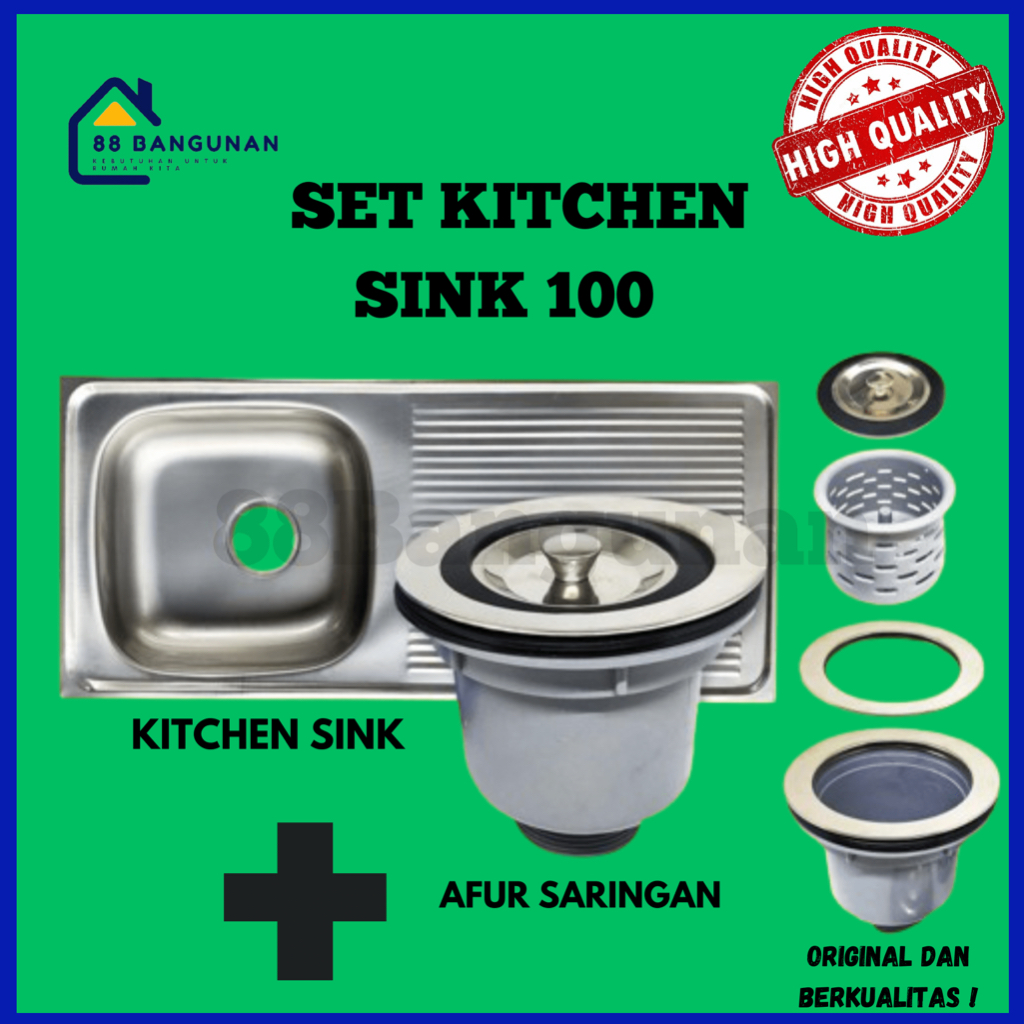 BAK CUCI PIRING / KITCHEN SINK / WASTAFEL STAINLESS 100 + AFUR SARINGAN | SET TERLENGKAP