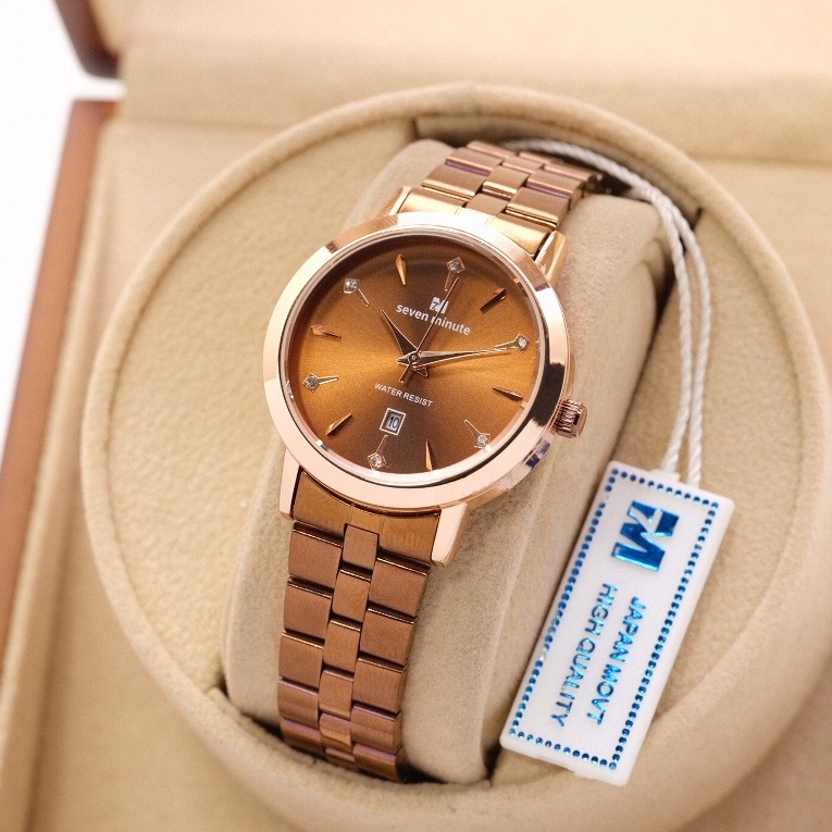 Jam tangan wanita original seven minute M744 tanggal water resistant quartz cewek tahan air