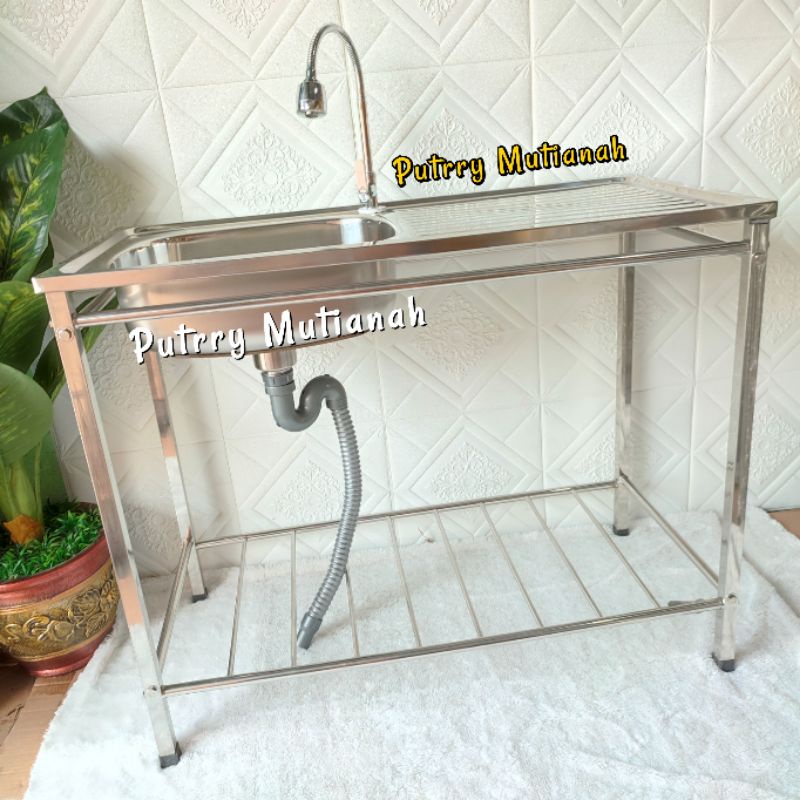 Terlaris Wastafel rtable Uk 100x50 Kitchen Sink Bak Cuci Piring Stainless Kran Tanam Soap Dispense