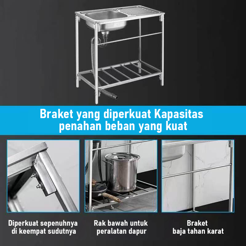 SUS304 Paket Bak Cuci Piring+Braket Wastafel Cuci Piring Stainless/ Sink/ Kitchen Set Peark7540cm