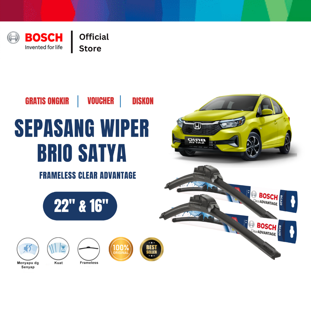 Bosch Sepasang Wiper Mobil Honda Brio Satya Frameless Clear Advantage 22 dan 16 Inci