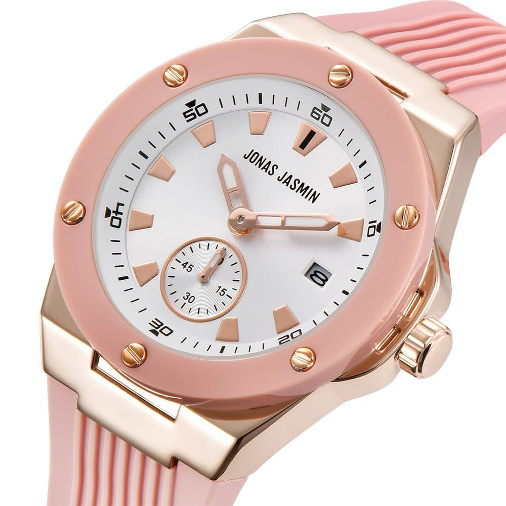 Jam Tangan Wanita Jonas Jasmin-2250L Tali Rubber Body Bulat Chrono&Tanggal Aktif