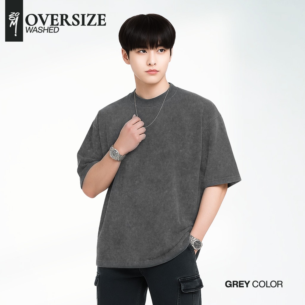 Zoomi Kaos T Shirt Wash Oversize Polos Full Katun 20s Tebal Lembut Menyerap Keringat Nyaman Seharian