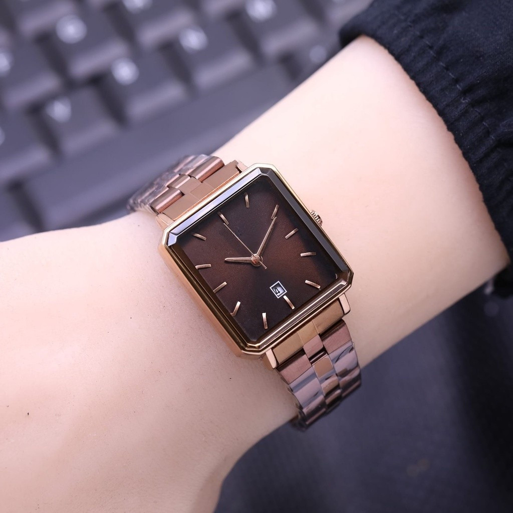 Jam Tangan Wanita F045L Kotak Tanggal Aktif Rantai Premium Free Box + Baterai Cadangan