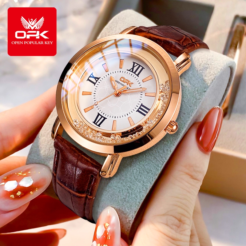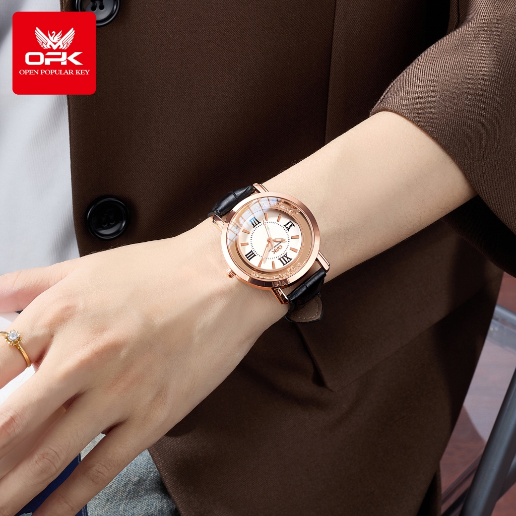 OPK Jam Tangan Wanita Original Anti Air Terbaru Tahan Cewek Korean Aesthetic Style Kecil Elegan Kulit Luminous Analog Qu