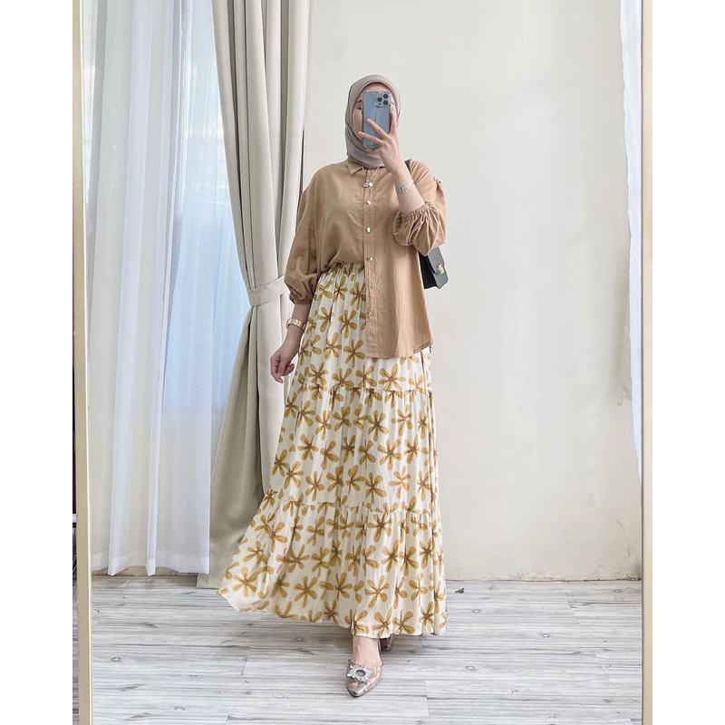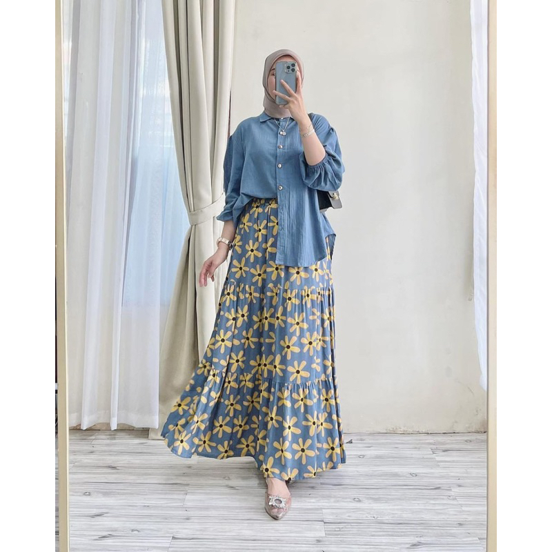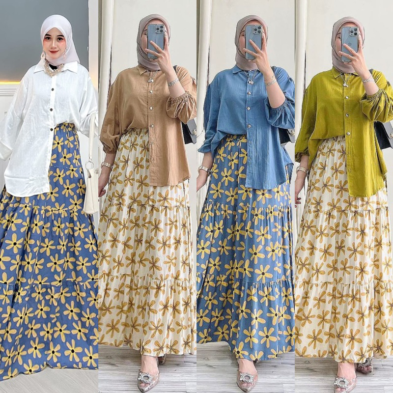 one set rok 2in1 motif bunga rayon premium mix pololinen setelan wanita
