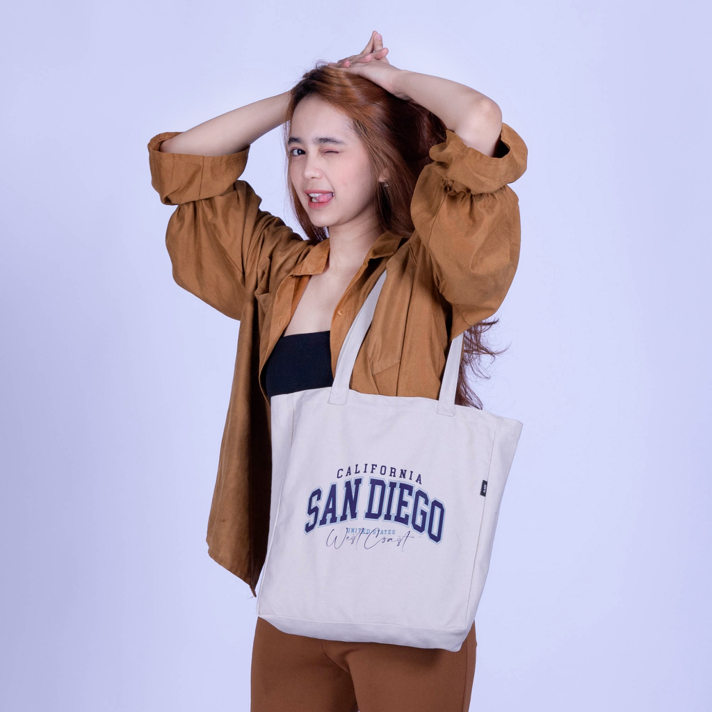 Flade Studios Totebag Kanvas Cream Resleting - Tas Kuliah Pria Wanita - City Series