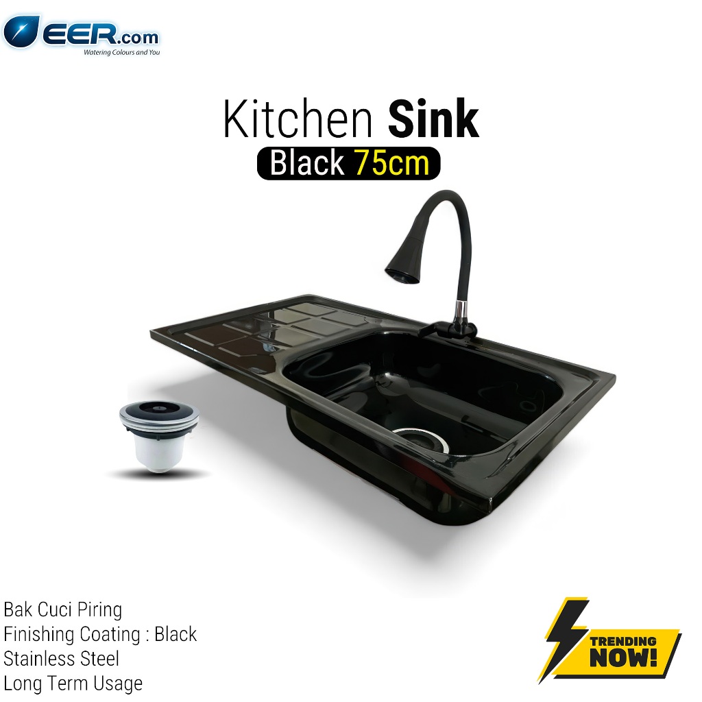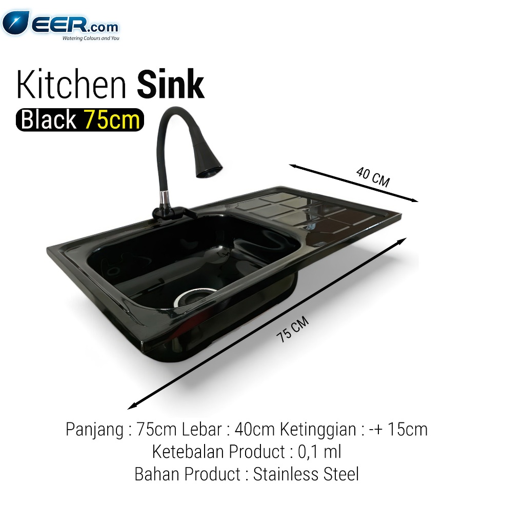 Bak Cuci Piring Hitam Doff Stainless Steel 75cm Fullset / Paket Lengkap Kitchen Sink Wastafel