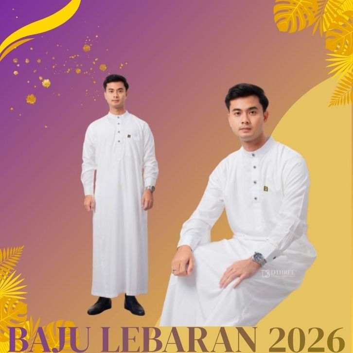 BAJU LEBARAN 2026 Jubah Pria Lengan Panjang Warna Putih Jubah Umroh Jubah Pria Lebaran 2026