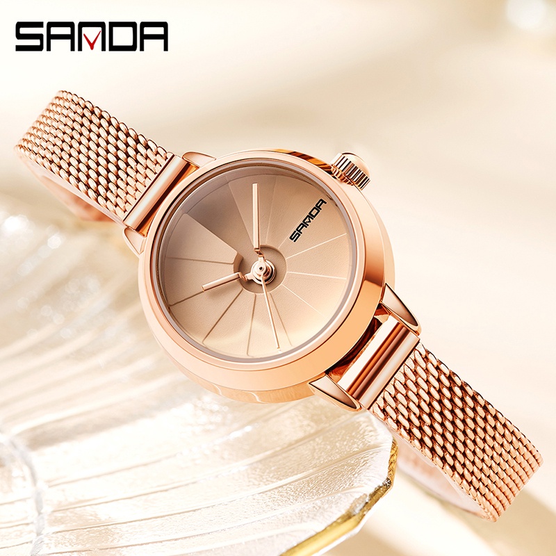 SANDA 1113 Jam Tangan Wanita Analog Retro Style Tali Stainless Quartz
